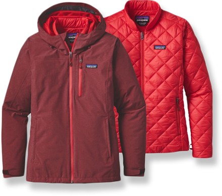 The warmth of the patagonia snowshot 3 in 1 comes from 60 grams of synthetic insulation in the liner the multiple layers of fabric in the entire package we counted at least five layers of fabric and one layer of insulation throughout the entire combined product and the air spaces between all these layers.